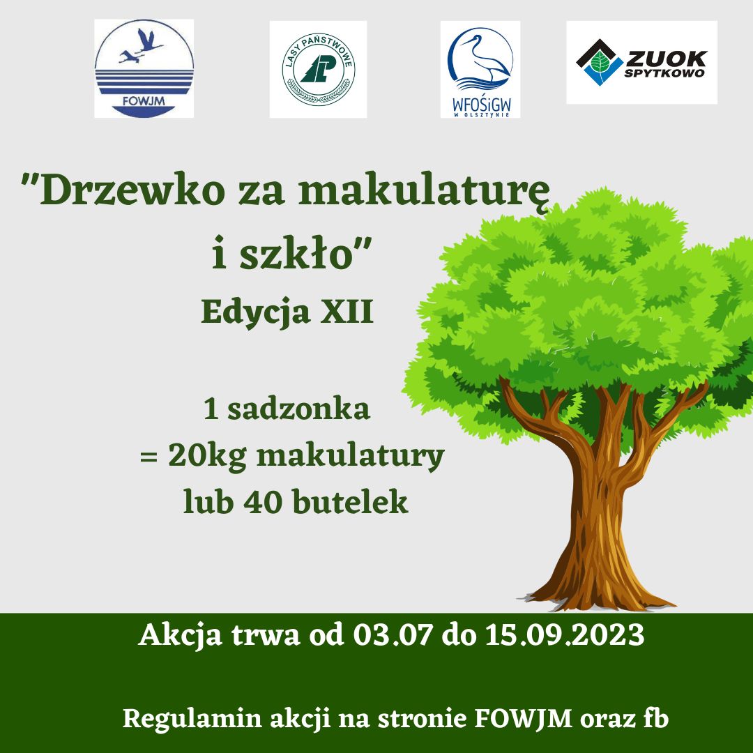 informujemy, że finał akcji „Drzewko za makulaturę i szkło” odbędzie się 14.10.2023r (sobota).
