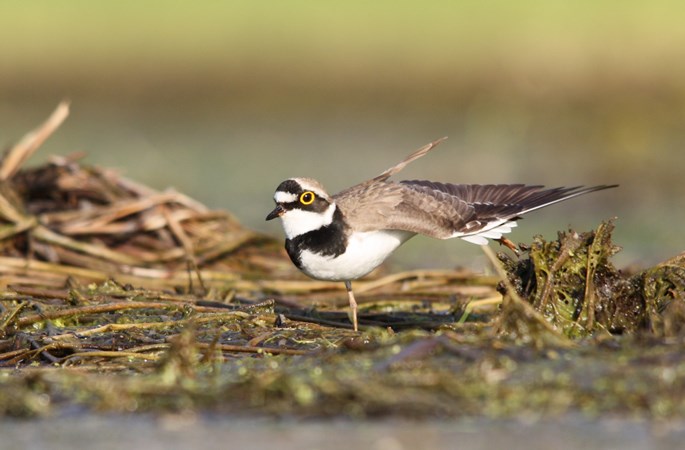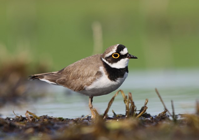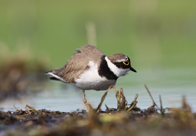 Bardzo łatwo przeoczyć sieweczkę rzeczną w terenie. Oczywiście ptakom to jest jak najbardziej na rękę, a raczej na skrzydło. Jak przystało na ptaszka skrytego i tajemniczego jego głowę przyozdabia charakterystyczna maska, wcale nie gorsza niż u legendarnego Zorro. Na czarnym tle wyróżniają się jedynie duże oczy obrysowane jaskrawą, żółtą obwódką. Lubimy takie oczy u zwierząt - duże, okrągłe, czarne. To wszystko budzi pozytywne odczucia, nadaje sylwetce ptaka miły, przyjazny i pozytywny wizerunek, przybliżając go nieco do pluszowych, dziecięcych zabawek. Szarobrązowy wierzch ciała sieweczek to z kolei element umożliwiający odpowiednie maskowanie w terenie. To ptaki doskonale przystosowane do siedlisk, w których występują. A gdzie je można znaleźć - Pierwsza i to żelazna zasada brzmi: tam , gdzie przebywa sieweczka rzeczna musi być woda - duża, mała, kałuża ( to już nie jest takie istotne). Ważne jest jednak, żeby była również odpowiednia ilość przestrzeni z niską roślinnością, płytkie obrzeża, dużo piasku, kamyków, żwirku, trochę błotka. Właśnie w takich warunkach te niewielkie ptaki mogą poczuć się jak w domu. A więc w grę wchodzą brzegi rzek, jezior, a nawet wszelkiego rodzaju stawy, rozlewiska śródpolne itp. Dodatkowo ptaki te często szukają sobie zastępczych biotopów, sztucznie stworzonych przez człowieka, które w jakimś stopniu spełniałby ich podstawowe wymogi. I tak coraz częściej sieweczki rzeczne pojawiają się w żwirowniach, na placach budowy, spuszczonych, gospodarczych stawach, w wykopach i wielu innych dziwnych, nietypowych miejscach.