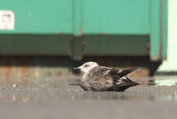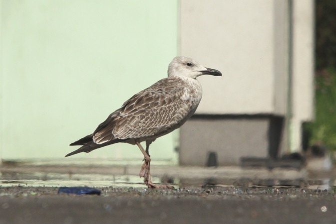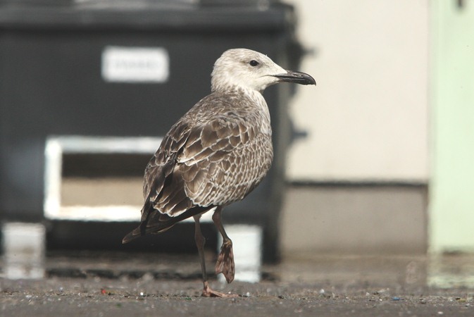 Tymczasem mijały kolejne tygodnie sierpnia, a młoda mewa białogłowa czuła się w swoim nowym środowisku coraz pewniej. Jednak zazwyczaj chadzała własnymi ścieżkami. Kiedy inne mewy z zapalczywością walczyły o najlepsze kąski na składowisku ona wolała w spokoju i samotności spacerować po asfaltowych drogach tuż przy biurowcu i hali sortowni. Wyglądała na ciekawską - wszędzie zaglądała, poznawała wszystkie zakładowe zaułki i zakamarki. Największą swobodę miała po godzinach pracy - wieczorami i w weekendy. Wtedy nie przeszkadzali pracownicy, przejeżdżające samochody, ani pracujące pełną parą maszyny i urządzenia. Jedynie moje wizyty trochę rozpraszały sielankę i mąciły spokój mewy. Ona, jak przystało na ciekawskie stworzenie, za każdym razem witała mnie, gdy tylko dojeżdżałem na zakładowy parking. Jednak zwykle po krótkiej wymianie uprzejmości "białogłówka" wracała do swoich zajęć. Najwidoczniej nie bardzo miała ochotę na dalszą integrację. Szczególną nieufność wykazywała w stosunku do mojego aparatu fotograficznego. Kilka razy podążałem za nią między budynkami jak paparazzi za gwiazdą filmową. Znała mnie już doskonale i wiedziała, że nie jestem jakimś wielkim zagrożeniem, a jedynie męczącym natrętem. Uciekała na piechotę niczym wiejska kura, bawiąc się ze mną w kotka i myszkę. Mogła w końcu bez trudu w każdej chwili pozbyć się mojego towarzystwa wzbijając się w powietrze. Dlaczego tego nie robiła? Są dwa wytłumaczenia: albo robiła sobie żarty i przy tym nieźle się bawiła, albo w mojej osobie nie widziała zbyt zwinnego i zgrabnego stworzenia, które miałoby jakiekolwiek szanse, aby ją dopaść. Tak czy owak, w obu przypadkach ptak mnie trochę lekceważył. Mimo wszystko myślę, że udało nam się przez ten czas nawiązać jakąś nić sympatii. Kilka razy nawet udało mi się przechytrzyć moją mewę. Goniłem ją jak zwykle. Tym razem, gdy znikła za rogiem okrążyłem budynek z drugiej strony i ukryłem się za paletą z plastikowymi butelkami. Rozemocjonowany ptak dreptał równym tempem przekonany, że zostawił mnie w tyle. A tu niespodzianka! Zupełnie dla siebie niespodziewanie wtargnął tuż przed mój obiektyw. Tym razem to ja byłem górą. Tak się przez niemal dwa miesiące wspólnie bawiliśmy w chowanego, berka i inne zabawy. Za każdym razem kiedy byłem na terenie zakładu szukałem swojej znajomej młodej mewy białogłowej. Ostatni raz widziałem ją 11 września 2016r. Co się z nią mogło stać? Tego już nie dowiem się nigdy. Być może zgubny okazał się ten brak ostrożności i w nieszczęśliwym wypadku przejechał ją jakiś samochód lub inna zakładowa maszyna. A być może moja mewa po prostu dorosła i przestały już ją cieszyć zabawy i uroki życia w zindustrializowanym światku. Poczuła zew przynależności do grupy i udała się ze swoimi kuzynami na jesienną tułaczkę. Będę się kurczowo trzymał tej drugiej wersji. Jedno jest pewne. Gdziekolwiek jest z całego serca życzę jej powodzenia!!!