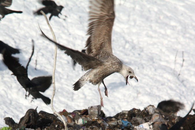 Zakład w Spytkowie jest bardzo chętnie odwiedzany przez wszystkie okoliczne gatunki mew. To niemal punkt obowiązkowy. Tym bardziej, że ptaki te przemieszczają się w większych lub mniejszych grupach. Zawsze znajdzie się przewodnik, który pociągnie pozostałych w kierunku... śmieci. Preferencje pokarmowe i możliwości mew doskonale wpisują się warunki i ofertę, jaką dysponują dla ptaków składowiska odpadów. Mewa jest wszystkożerna i zje niemal wszystko, zarówno pokarm pochodzenia roślinnego, jaki i zwierzęcego. W dodatku może być stary, spleśniały, zbutwiały lub gnijący. Są przystosowane do pobierania takiego pokarmu i w żadnym wypadku im to nie szkodzi.