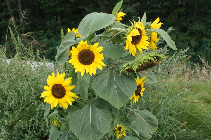 Składowisko Zakładu Unieszkodliwiania Odpadów Komunalnych w Spytkowie oferuje dynie przeróżne - na każdą głowę. Wybór jest całkiem spory - są dynie klasyczne o kolorze pomarańczowym, ale również żółte, zielone, kropkowane, cętkowane. Niektóre z nich eksponowane, inne szczelnie ukryte w zielonej roślinności. Wszystko oczywiście jeszcze rośnie, wzbiera, przybiera na wadze - dynie nie powiedziały jeszcze ostatniego słowa. Nikt i nic nie jest w stanie zahamować samoistnej eksplozji warzywnego szaleństwa. Szkodniki są bezradne. Nawet taki bezwzględny postrach ogrodników, jak ślinik luzytański - brązowy, duży ślimak bezskorupowy. Znalazłem jednego na betonowym przęśle, jak leżał na mokrej plamie - chyba tak płakał z bezsilności. On chodzi, gryzie, pożera, stara się, jak może - a wszystko kwitnie i ma się dobrze. I jak tu się wykazać, jak wypełnić swoją osobliwą, szkodniczą rolę! Z całego gąszczu dumnie wystają dodatkowo dorodne główki słonecznika. I z tej uprawy chyba najbardziej cieszą się drobne ptaki, które już zacierają skrzydła. Gdy tylko olbrzymi kwiatostan zamieni się w talerze z nasionami dla ziarnojadów będzie prawdziwa wyżerka. Szczygły, dzwońce, ale także sikory, czy mazurki z pewnością będą korzystały z zakładowych dobrodziejstw.