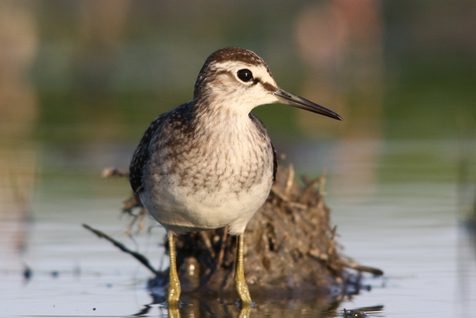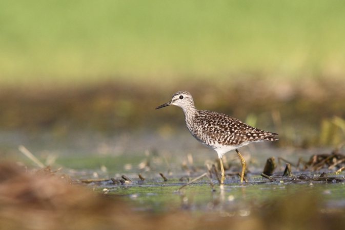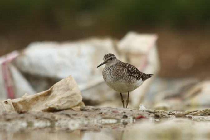 Całe rozważania dotyczące łęczakowych skłonności śmieciowych należy rozpocząć od krótkiego opisu i charakterystyki tego stworzenia. Co to w ogóle za ptaszysko, z czym się kojarzy, jak się prezentuje, jakie ma skłonności, jakie spełnia kryteria, co się o nim mówi w kuluarach i czego dowiedzieć się nie sposób. A więc garść faktów i cała masa plotek! Po pierwsze: wygląd! Łęczak to szarobrązowy jegomość wielkości drozda z plamkowanym deseniem na grzbiecie i kreskowaniem na piersi. Jak każdy ptasi gatunek ma oczywiście swoje atrybuty i mocne strony. Do nich należą przede wszystkim: długi, prosty i dosyć cienki dziób - precyzyjne narzędzie, a także mocne i wydłużone nogi sprawiające, że ptak dobrze porusza się po lądzie, a co jest najważniejsze - ma odpowiednią dynamikę i przyspieszenie. Mając przed sobą takie stworzenie o "miniaturowo bocianich" proporcjach i wyglądzie nie trzeba być wielce zmyślnym i inteligentnym, żeby określić dietę tych ptaków, a już na pewno sposób jego pozyskiwania. Oczywiście taki ptak dybie przede wszystkim na drobne owady, mięczaki, pajęczaki, skorupiaki i wszelkie inne żyjątka, których poszukuje w płytkiej wodzie, błocie, mule, nad brzegami stawów, śródpolnych rozlewisk, oczek wodnych, a czasem jezior. Tu długi dziób sprawdza się doskonale i łęczak nie zawaha się z niego skorzystać. Rozgarnia, przebiera, grzebie, wyciąga, sonduje w grząskim podłożu. Niewielkie zwierzątka zagrzebane i poukrywane w mule nie mogą czuć się bezpiecznie. A dziób po takiej robocie brudny, w błocie, w mazidle, w wodorostach. Nic sobie jednak z tego łęczak nie robi. Na higienę przyjdzie czas po kolacji...