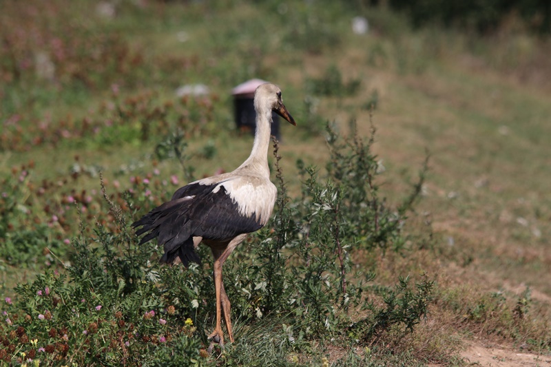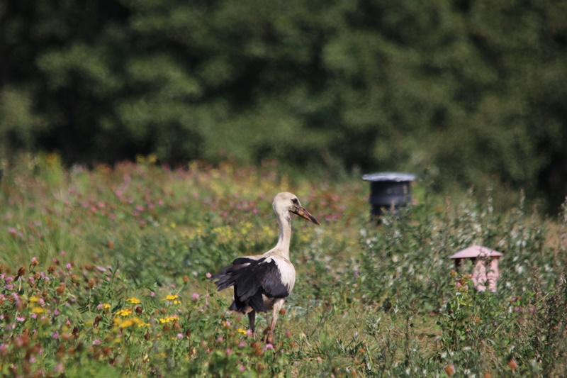 To się porobiło! Wrześniowy liść na drzewie już powoli żółknie, a na terenie ZUOK-u jeszcze jedna sylwetka z długimi nogami i pokaźnym dziobem. O tej porze powinno pozostać po nich jedynie wspomnienie. A tu realny bocian – z krwi i kości. Coś mi się wydaje, że z tym nieszczęśnikiem będzie jeszcze wiele kłopotu i zamieszania. Najwyraźniej nie załapał się w tym roku na bilet lotniczy do Afryki!!!