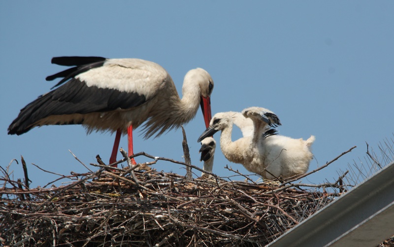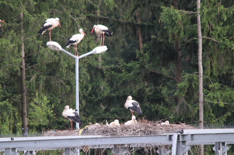 Już w poprzednim roku dorosłe ptaki testowały możliwość założenia swoich gniazd w oparciu o infrastrukturę tego uprzemysłowionego skrawka terenu. To miał być przełomowy i historyczny zwrot w dziejach lokalnych boćków – lokum tuż przy składowisku, a więc tuż przy żarciu, żeby nie powiedzieć, przy korycie. Wygodnictwo, komfort, a jednocześnie kontrowersje. Jak się odnieść do nowych wyborów bocianów, które porzuciły tradycyjną skłonność osiedlania się w malowniczym krajobrazie wiosek, łąk i pól? Czy to się godzi, a przede wszystkim nie szkodzi? Czy tego typu całodobowa stołówka tuż przy gnieździe to pokusa dla rodziców i wygoda, która eliminuje potrzebę szukania pokarmu naturalnego i pełnowartościowego dla młodych ptaków? Pytań przybywało w tym samym tempie, co bocianich gniazd na stelażu urządzeń kompostowni. Jednak w ubiegłym roku żadne jajo nie wylądowało w uwitych pieczołowicie konstrukcjach, co pozwalało przypuszczać, że teren zakładu to tylko poligon doświadczalny dla początkujących, przyszłych rodziców. Nic z tego, co się odwlecze to nie uciecze, jak mawia staropolskie porzekadło. W tym sezonie żarty i wszelka prowizorka się skończyły. Bociany postanowiły pójść na całość i w dwóch z sześciu utworzonych gniazd pojawiły się pisklęta.