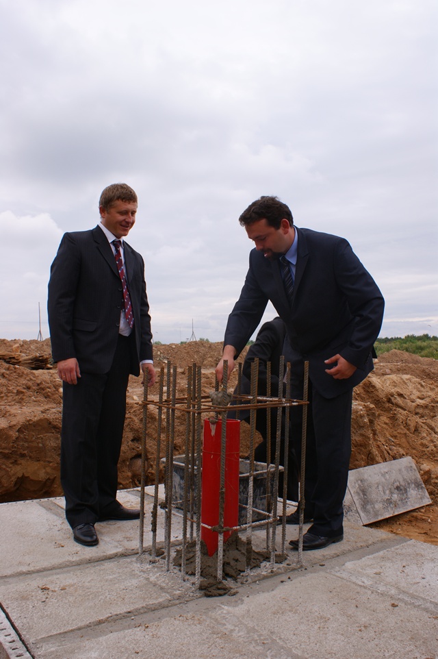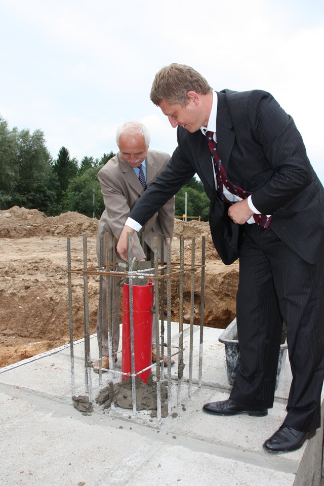 Na zdjęciu od lewej P. Lachowicz i J. KarpińskiW piątek 22 lipca 2011r. odbyła się uroczystość wmurowania aktu erekcyjnego pod budowę Zakładu Unieszkodliwiania Odpadów Komunalnych w Spytkowie.
