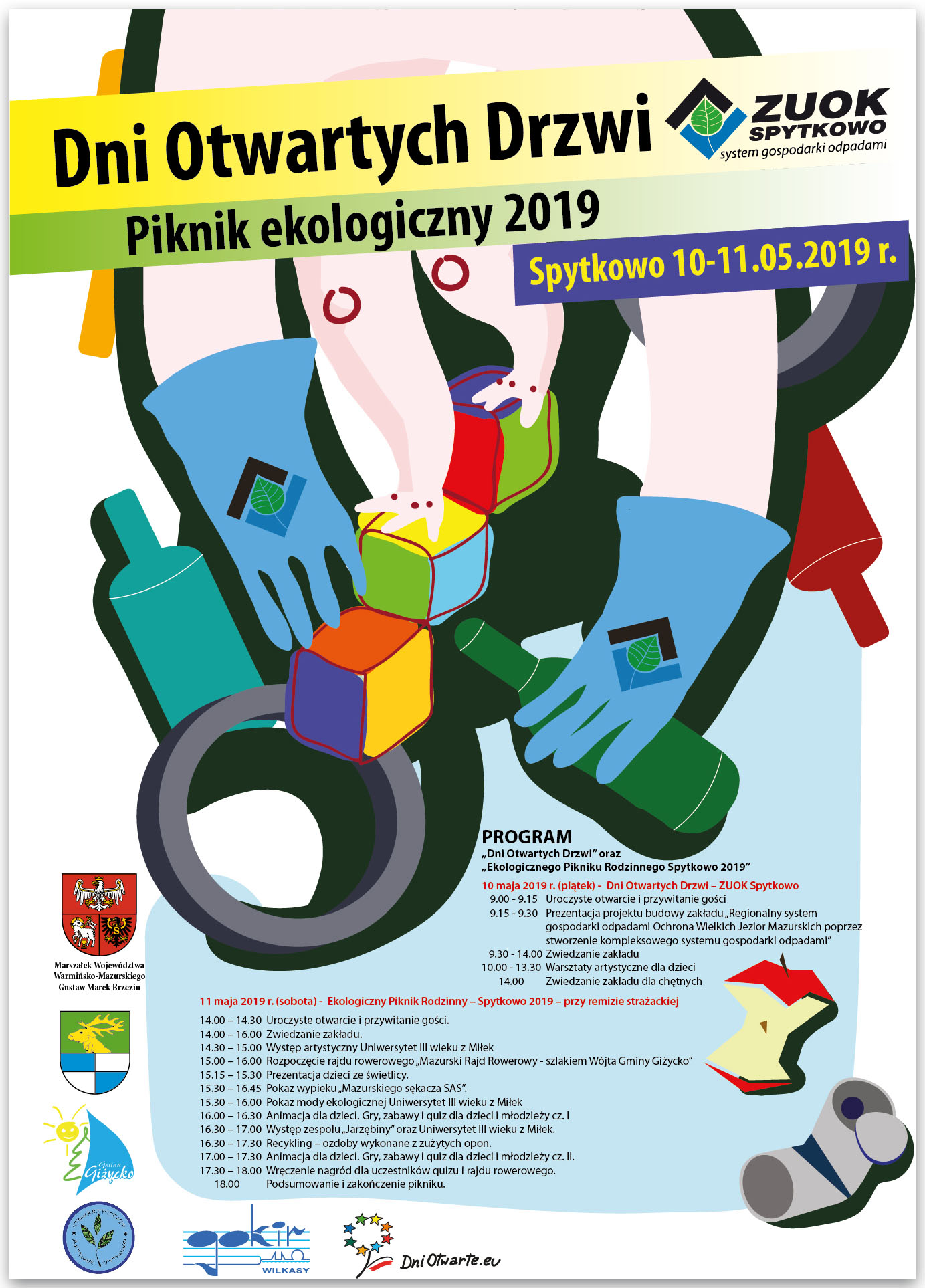 W Spytkowie odbędzie się VI edycja akcji „Chronimy Mazury! Dni otwartych drzwi w ZUOK Spytkowo”. W tym roku oprócz warsztatów dla dzieci i pikniku ekologicznego, zorganizowane zostaną również Dni Otwarte Funduszy Europejskich. Serdecznie zapraszamy każdego kto chciałby dowiedzieć się jak dbać o środowisko oraz jak uzyskać środki finansowe z funduszy unijnych! Bawimy się i edukujemy 10 i 11 maja.