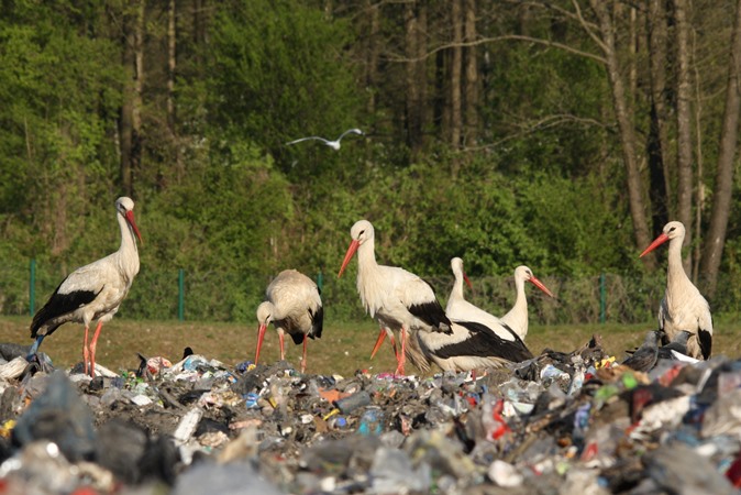 Drugą grupę stanowią z kolei ptaki, które przylatują na krótszy okres czasu, podczas którego nastawione są na intensywne żerowanie. Takie bociany przebywają od kilkunastu do kilkudziesięciu minut, po czym z własnej i nieprzymuszonej woli opuszczają składowisko lecąc w wyraźnym, konkretnym kierunku. To zapewne przedstawiciele frakcji zapracowanych rodziców, którzy wspierając się ofertą okolicznego wysypiska poszerzają sobie możliwości zapewnienia dostatku pokarmowego. Ruch w interesie na placu składowiskowym jest ogromny. W czerwcu 2016r. udało mi się zaobserwować jednocześnie 86 żerujących bocianów. W tym roku na razie rekordowa ilość to 58 ptaków.