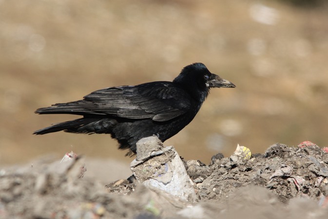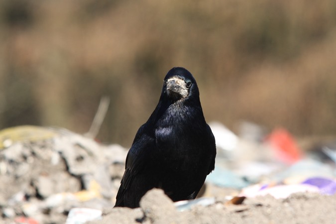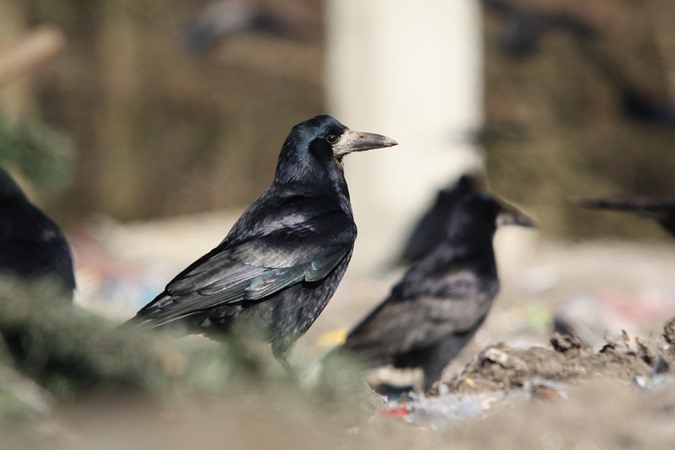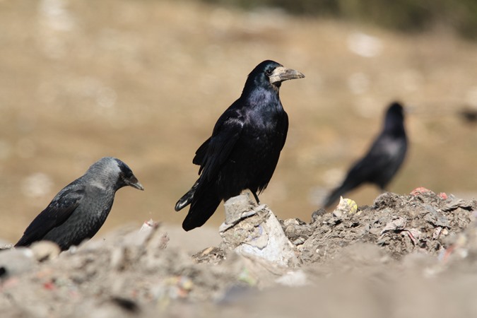 Oczywiście jak przystało na ptaki krukowate gawrony to stworzenia wszystkożerne. Jednak w ich diecie zaskakująco dużą rolę odgrywa pokarm roślinny. Oczywiście u ptaków zamieszkujących poszczególne biotopy i odmienne obszary geograficzne proporcje te znacząco się różnią. Jednak generalnie można określić, że mięcho w stosunku do roślin w menu gawronów rozkłada się w stosunku - "pół na pół". Stąd też równie ochoczo jak w miastach gawrony żerują również na polach wyszukując ziaren jęczmienia, owsa, żyta, pszenicy, kukurydzy itp. Chętnie odwiedzają też wysypiska śmieci. Za takie miejsca gawrony lubią ludzi najbardziej. To one podkreślają dwie ubóstwiane przez te ptaki cechy ludzkie - rozrzutność i przedsiębiorczość! W końcu tam mogą poszaleć - w resztkach mogą znaleźć i pokarm roślinny i odpadki mięsne. Nic dziwnego, że na placu składowiskowym Zakładu Unieszkodliwiania Odpadów Komunalnych w Spytkowie gawrona można zobaczyć niemal każdego dnia bez względu na pogodę, czy porę roku. Okazji do obserwacji żerujących gawronów więc mi nie brakowało. Ptaki te podczas poszukiwań swojego wymarzonego kąska poruszają się dosyć powoli, miarowo, dostojnie. Nie ma szaleństwa, biegu, paniki. Widać opanowanie i skupienie, skrupulatność i dokładność. W hałdach śmieci nie łatwo znaleźć właściwy łup. Trzeba włożyć mnóstwo pracy i mozolnie przeczesywać teren. Tu z pomocą przychodzi gawronom ich wspaniały, pokaźny, mocny i stosunkowo długi dziób. Takim narzędziem można rozkopywać odpady, przewracać je, przekładać i wybierać. Gdyby tak można było się dogadać z gawronami i podpisać z nimi umowę (nawet śmieciową) to z pewnością ptaki z tak wyspecjalizowanym dziobem sprawdziłyby się w pracy przy sortowaniu odpadów. Najwyżej część z nich by po prostu zjadły!