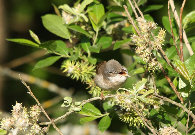 Ptaki z reguły śpiewają wiosną. To początkowy okres lęgowy dla większości gatunków. Przylatują na swoje włości, zajmują rewiry, głosem oznajmiają o samozwańczym akcie własności do danego skrawka terenu. Kwiecień i maj to pora symfonicznych i chóralnych dzieł ptasich solistów, które przenikają się i mieszają tworząc niepowtarzalną aurę, szczególnie o poranku, w pogodny dzień. Z czasem emocje opadają, porządek i granice rewirów ustalone, przychodzą na świat pierwsze pisklaki. Milkną również samce, które nie mają już potrzeby informowania całego świata o swoim istnieniu i obecności. Latem trzeba się skupić na innych powinnościach i obowiązkach. Są jednak oczywiście od tego wszystkiego wyjątki. To najczęściej gatunki ptaków, które wydłużają swój okres lęgowy i w ciągu roku kilka razy podejmują wyzwanie wychowania kolejnego pokolenia. W tym przypadku nadal od czasu do czasu trzeba komunikować dla otoczenia o swojej pozycji i swoim panowaniu. Cierniówki w sezonie dwukrotnie podchodzą do lęgów, więc mają w tej materii coś do powiedzenia, i w przenośni, i dosłownie. Samce tych ptaków są bardzo rozśpiewane. A nawet są super rozśpiewane. Posiadają do tego smykałkę i zapał. Podśpiewują sobie i rano, i w południe i pod wieczór. Mają parcie do prezentowania wokalnych popisów zarówno terytorialne samce, jak i te młodsze, mniej doświadczone, dopiero aspirujące do założenia rodziny. Śpiew cierniówki jest jednym z najbardziej znanych głosów terenów otwartych. Byle kępa zarośli, byle większe zakrzewienie, byle przydrożny szpalerek niewielkich drzew – już słychać melodię cierniówek. Podstawowy śpiew jest dosyć prosty i niepozorny, to podzielone zwrotki składające się z krótkiego dosyć chaotycznego trelu powtarzane bez końca i do znudzenia. To jednak tylko przedsmak i uwertura do właściwej twórczości. W momentach największej ekscytacji i podniecenia samce przy swoich rewirach wykonują dłuższą i bardziej złożoną pieśń ( jednak o podobnym charakterze). Żeby bardziej uatrakcyjnić „wykon” wzbijają się wówczas w powietrze i powoli opadają wydając z siebie długotrwałą kaskadę dźwięków. Oczywiście lądują ponownie w widocznym miejscu i dalej występ kontynuują stacjonarnie. Takie popisy wokalno – taneczne ciągną z uporem i bez opamiętania.